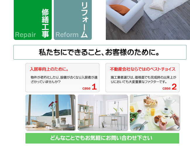トップページへ 不動産投資 管理業務 内装工事 お問い合わせ 会社概要